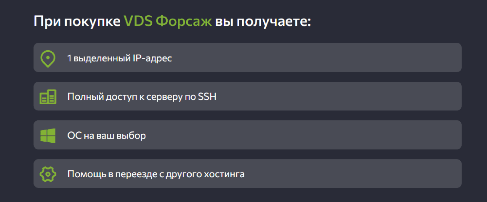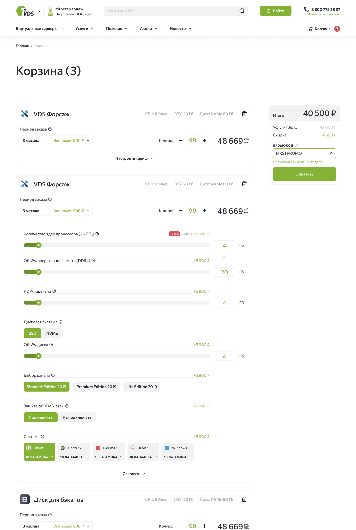 У FirstVDS есть разные “преконфиги” вроде “VDS Форсаж”, каждый конфиг обладает своими преимуществами, их выделение должно помочь с выбором нужного.
