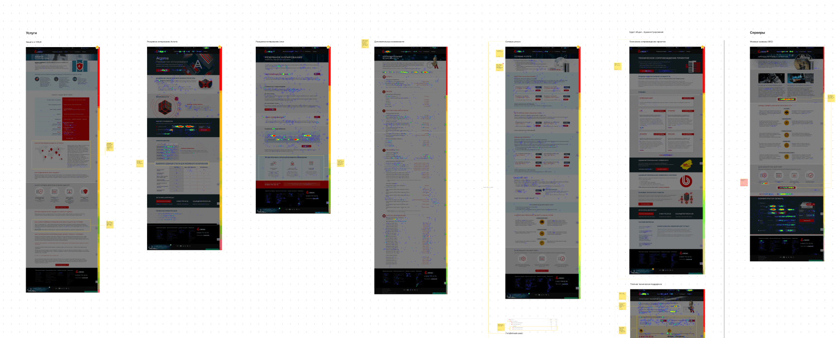 Итогом исследования стал обширный FigJam файл, состоящий из портретов ЦА, анализа конкурентов, макетов, объединённых с тепловыми картами и кучей гипотез по улучшению интерфейса