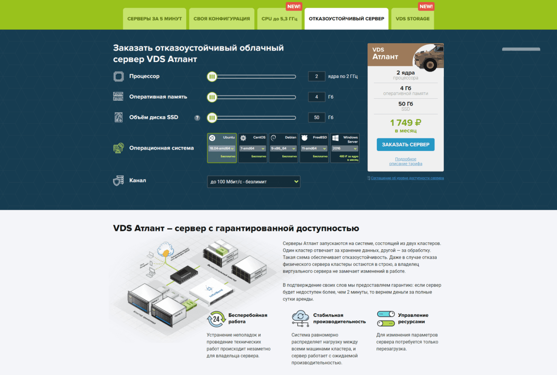 Акцент на преимуществах сервера