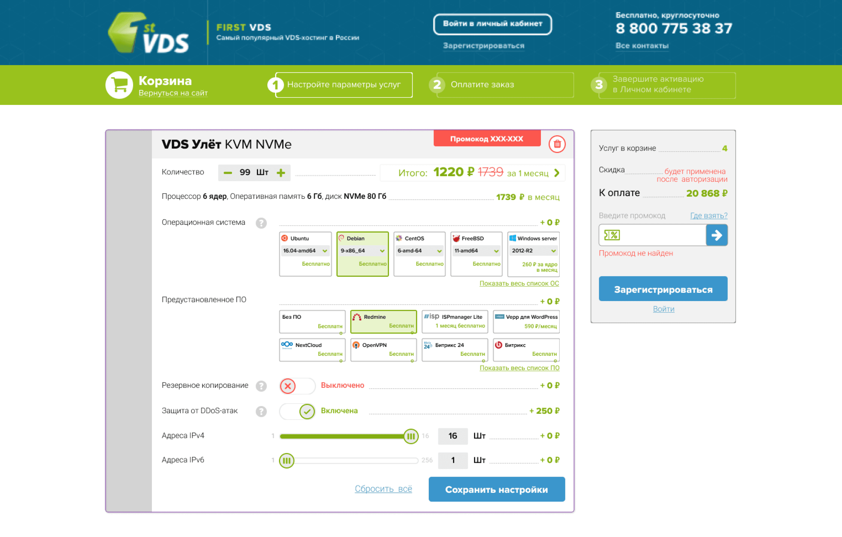 Но итоговое решение обычно принимает не тот, кто настраивает сервер, поэтому часто делают скриншот саммари. Если саммари будет информативное, это повысит шансы покупки сервера именно у FirstVDS. А кнопка шеринга упростит процесс передачи конфигурации лицу, принимающему решения.
